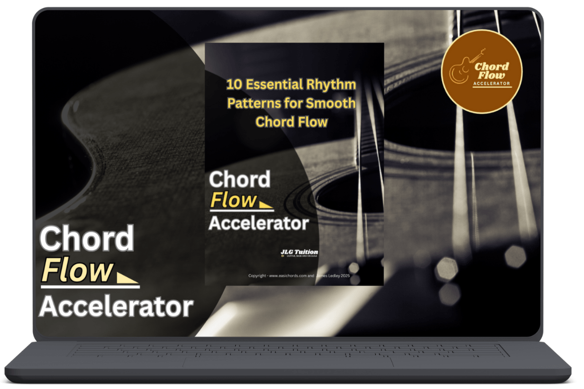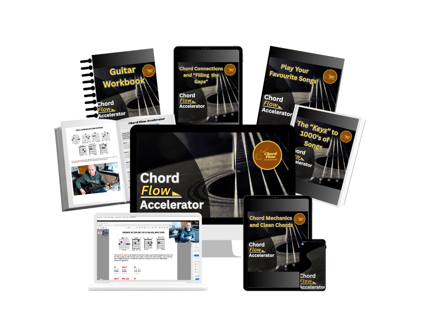 Chord Flow Accelerator isn’t just another beginner course. It’s a step-by-step system designed to fix the #1 struggle that keeps most players stuck: slow, clunky chord changes.